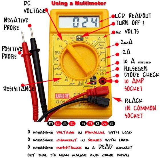 - Toujours commencer par régler l’échelle du multimètre au maximum, puis l’ajuster progressivement pour obtenir la mesure la plus précise.